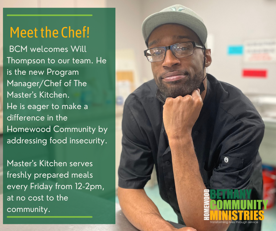 We're so excited to announce Will Thompson as our new chef and Manager of the Master's Kitchen program at Bethany Community Ministries!